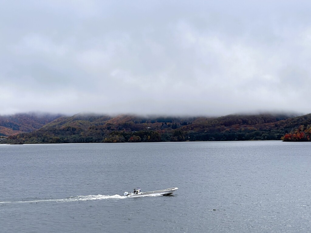 途中、猪苗代湖の「上戸浜」で休憩です。